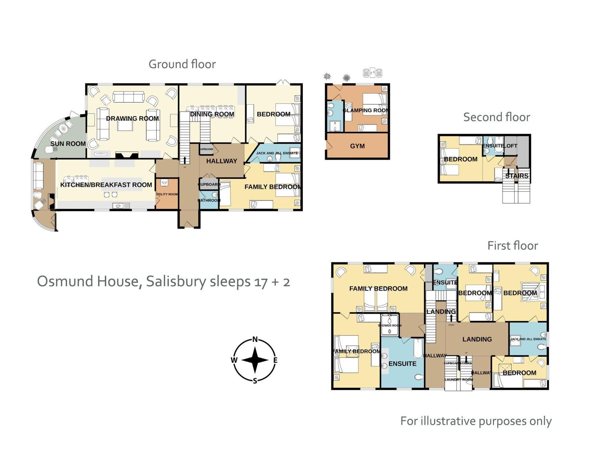This beautiful home is situated within 5 minutes of the nearest pub and 5 mins to Costa, a 15 minute walk to the famous Salisbury Cathedral and 20 mins from the railway station that has direct trains to London. Set in lovely extensive gardens, it is easily accessible by road and public transport. This impressive property has 7 bedrooms + additional bedroom annexe and 6 bathrooms. It sleeps 17 + 2 with the annexe which is off the garden and next to the gym.