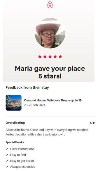 This beautiful home is situated within 5 minutes of the nearest pub and 5 mins to Costa, a 15 minute walk to the famous Salisbury Cathedral and 20 mins from the railway station that has direct trains to London. Set in lovely extensive gardens, it is easily accessible by road and public transport. This impressive property has 7 bedrooms + additional bedroom annexe and 6 bathrooms. It sleeps 17 + 2 with the annexe which is off the garden and next to the gym.